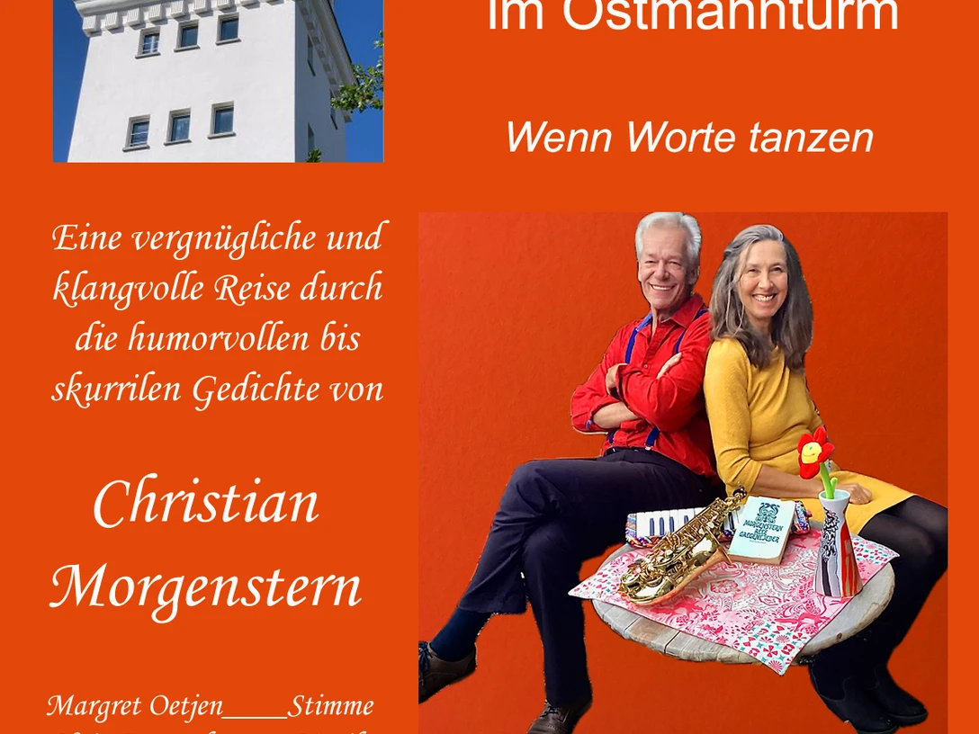 Mit ihren originellen Arrangements und Lust auf unerhörte Klänge tauchen Margret Oetjen (Stimme) und Hajo Bernard (Musik) in ihrer Performance in die literarische Welt Morgensterns ein – ein unterhaltsamer Abend zwischen Feinsinn und Humor.