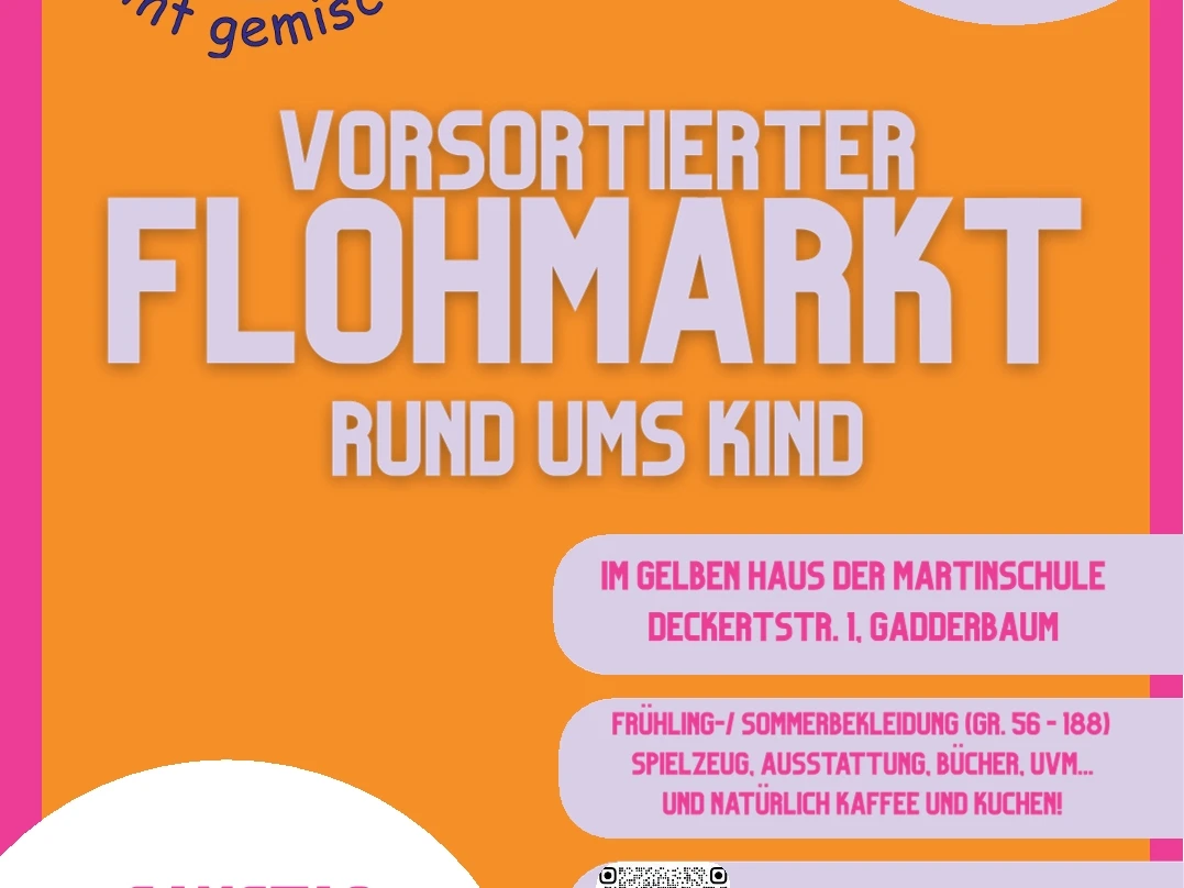 Am Samstag, 21.03.26, findet im Gelben Haus der Martinschule in Gadderbaum wieder ein vorsortierter Kinderflohmarkt statt. Von 14 bis 17 Uhr kann bei jedem Wetter nach Kinderkleidung (Frühjahr/Sommer, Größe 56-188), Spielzeug, Büchern, Ausstattung, Fahrzeuge u.v.m gestöbert werden.